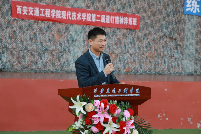 开班仪式在庄严的国歌声中拉开帷幕,都娟丽代表学院致辞并要求“道钉精神”淬炼班教练要讲究科学的训练方法,循序渐进,由浅入深,精准施教,严格落实安全要求,确保素质拓展工作平安顺利完成。寄语全体订单班成员要勇担使命,做有理想、有追求的新时代青年;要刻苦学习,提升素质,做有本领、有作为的新时代青年;要吃苦耐劳,团结协作,做有担当、有包容的新时代青年。