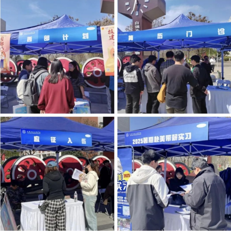 学校充分利用校友资源,建立校友企业库,邀请学校校友企业回校招聘,为毕业生提供就业机会。在就业服务方面,设立简历门诊、应征入伍、西部计划、2025年暑期赴美带薪实习等展位,从简历制作、征兵政策、基层就业、出国留学等方面为毕业生提供全方位的支持。