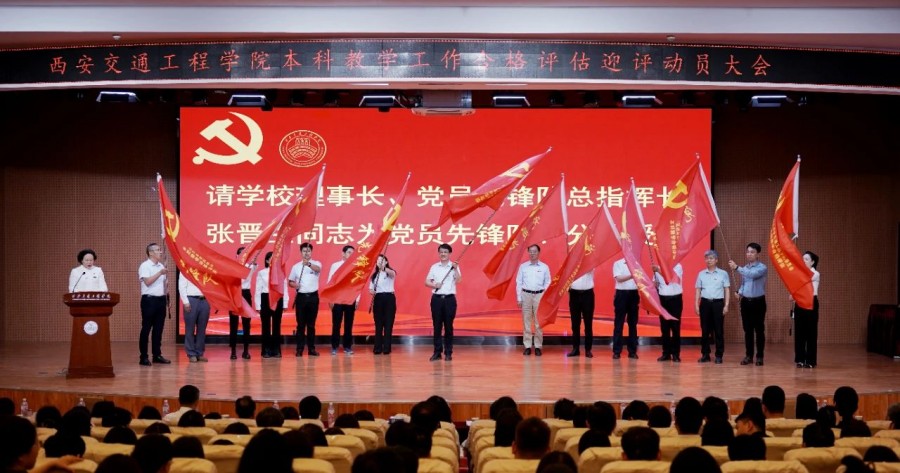 会上,校长曹庆年代表学校与人事处、财务处、教务处、交通运输学院签订本科教学工作合格评估承诺书。党委书记李萍宣读《中共西安交通工程学院委员会关于成立本科教学合格评估工作党员先锋队的通知》,理事长、党员先锋队总指挥长张晋生为党员先锋队队长及各党员先锋队分队分别授旗。