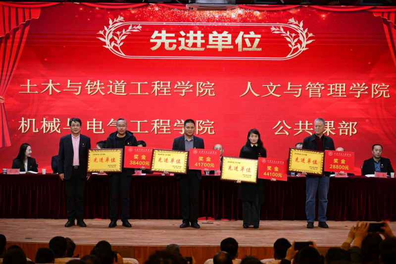 副校长吴伟宣读了《关于表彰2024年度先进单位 、优秀教师、优秀教育工作者、优秀处级干部的决定》,与会领导为获奖单位和个人颁奖;李萍书记分别与二级党组织代表交通运输学院党委、机械与电气工程学院党委、中兴通信学院党委、土木与铁道工程学院党委签订了全面从严治党责任书;张晋生理事长分别与部门和学院代表学生处、保卫处、人文与管理学院、现代技术学院签订了安全稳定责任书。
