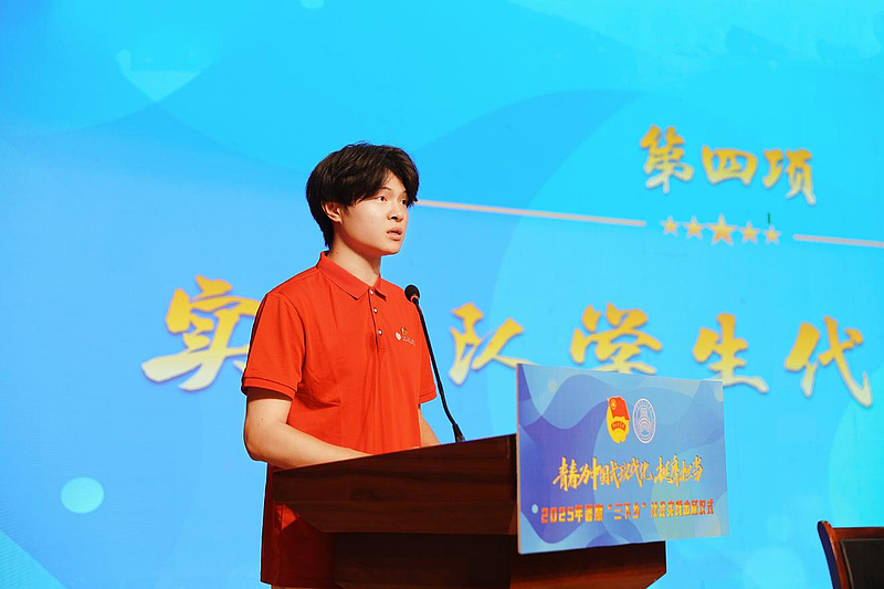 指导教师代表薛华在发言中表示,将以初心领航,做学生思想的引路人;以匠心护航,做学生社会实践的同行者;以恒心架桥,做社会实践的长效推动者。实践队员代表李嘉炜号召广大团员青年,作为新时代大学生,应当带着知识走出象牙塔,以躬身实践的姿态,把论文写在祖国大地上。用脚步丈量责任,用眼睛发现力量,用耳朵倾听期盼,用内心感应时代,在实践中践行“请党放心,强国有我”的青春誓言。