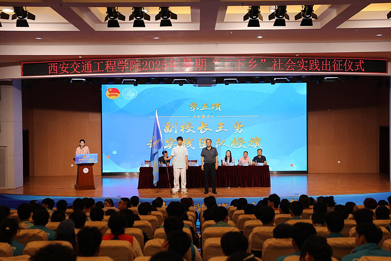 党委书记李萍向即将参与暑期“三下乡”社会实践的师生表达问候与感谢。她表示“三下乡”是落实立德树人、响应乡村振兴的重要行动。2025年既是“十四五”规划收官之年,也是“十五五”规划谋篇的承转之年,更是我校本科教学评估工作的关键之年,学校希望借此引导学子在实践中得以成长。李书记对参与同学提出了三点希望:一是筑牢思想根基,做理想信念的践行者;二是锤炼过硬本领,做躬身实践的奋斗者;三是厚植为民情怀,做服务社会的奉献者。希望全体实践队员能发扬我校“自身硬 扎得稳 靠得住”的道钉精神,将小我融入大我,青春献给祖国,积极投身乡村振兴伟大实践,在实现中华民族伟大复兴的赛道上跑出当代青年的最好成绩,学校党委将始终与大家同心同行,期待大家凯旋。并宣布西安交通工程学院2025年大学生暑期“三下乡”社会实践团队正式出征。
