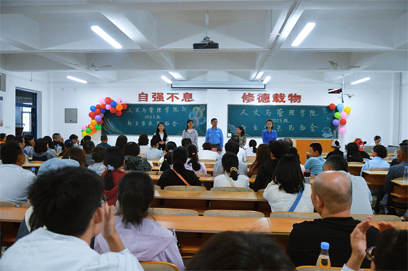 在家长会上,学院详细介绍了宿舍环境、食堂菜品和课程安排