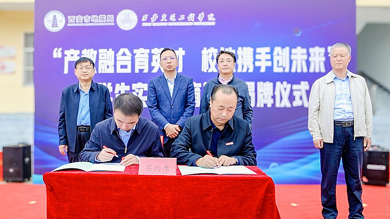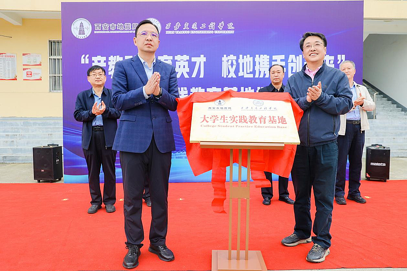 西安交通工程学院校长曹庆年与西安市地震局党组书记、局长任涛共同为“大学生实践教育基地”揭牌,将现场气氛推向高潮。红绸揭下,铜牌闪亮,标志着双方合作正式迈入实质性推进阶段。