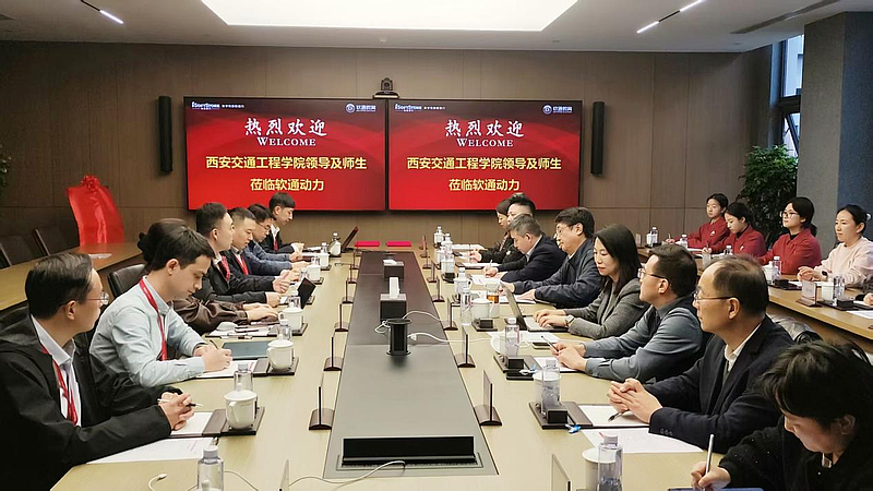会谈中,软通动力集团助理副总裁、软通教育首席运营官谭帅首先致辞。他对校长曹庆年一行的到访表示热烈欢迎,并介绍了软通动力的发展历程及在产教融合领域的战略布局。他表示,对与西安交通工程学院的合作充满信心,将全力支持“华通智能产业学院”的建设,共同培养符合产业需求的创新型人才。