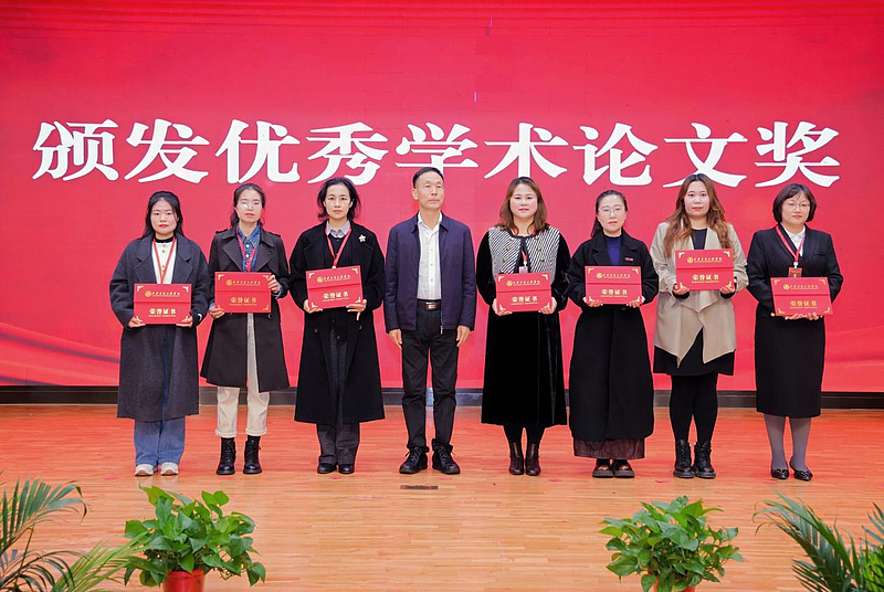 陕西省高等学校思想政治教育研究会民办本科高校分会会长、西安外事学院党委书记雷西合为获奖教师颁奖