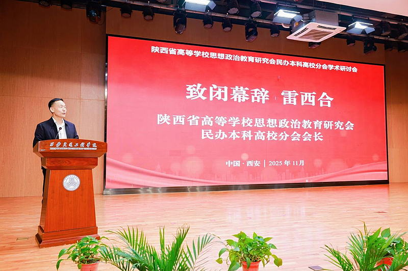 陕西省高等学校思想政治教育研究会民办本科高校分会会长、西安外事学院党委书记雷西合致闭幕辞。他对承办单位西安交通工程学院的精心筹备与高效组织给予高度肯定,指出本次研讨会紧扣时代脉搏、立足民办高校思政教育实践,精准呼应了新时代加强和改进高校思想政治工作的核心要义。他希望全体与会代表以此次研讨会为纽带,持续深化校际协同、拓宽研究视域,以更高质量的思政研究成果与实践探索,推动民办高校思政工作提质增效、内涵发展,为陕西教育事业高质量发展注入更为持久的强劲动力。