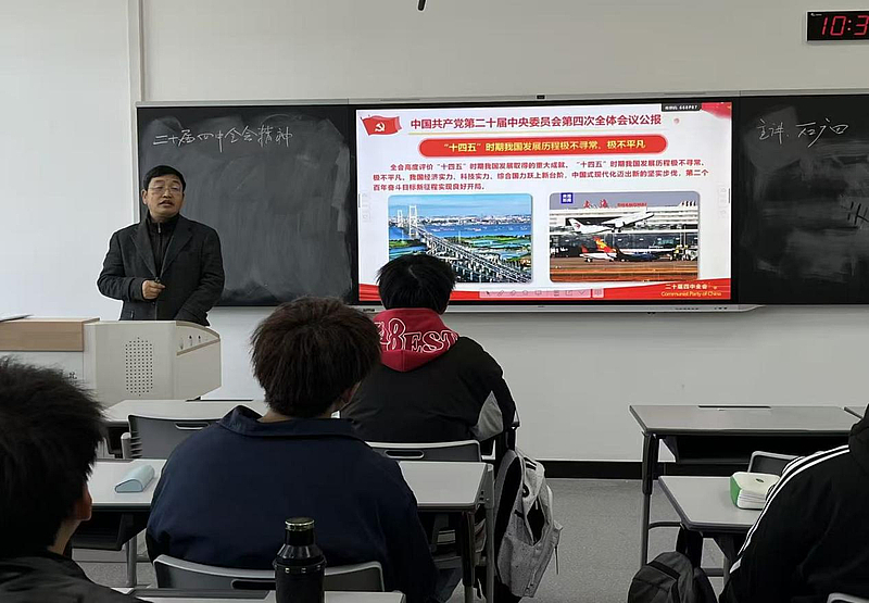 11月26日,副校长石广田为交通运输2502班学生讲授了一堂主题为“学习党的二十届四中全会精神 做好‘十五五’学校发展规划”的形势与政策课。石广田首先从“十四五”时期我国发展历程极不寻常和极不平凡、“十五五”时期是基本实现社会主义现代化的关键时期、“十五五”时期经济社会发展指导思想、“十五五”时期经济社会发展必须遵循的原则、“十五五”时期经济社会发展主要目标、“十五五”时期经济社会发展重要部署、全党全国各族人民团结起来为实现“十五五”规划而奋斗七个方面为学生分析了中国共产党第二十届中央委员会第四次全体会议公报的相关内容。他结合我校校情,从规划背景和指导思想、总体目标、保障措施几个方面为学生讲解了学校学科和专业“十五五”发展规划纲要。石广田寄语,要深刻领会党的二十届四中全会精神与“十五五”发展要义,将个人成长融入国家与学校发展大局,立足专业锤炼本领,为学校“十五五”建设和交通事业发展贡献力量。同学们深受鼓舞,明晰了个人与国家、学校的紧密联系,决心以饱满热情钻研专业知识,成长为有家国情怀、专业素养的新时代青年。