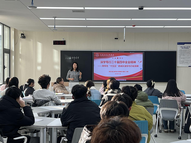 12月25日,副校长徐炜走进华通智能产业学院,为学生带来一场主题为《深学笃行党的二十届四中全会精神——青年在“十五五”的成长坐标与行动清单》的思政课。课上,她紧密联系国家发展全局与学院产教融合实践,引导师生深刻把握全会精神,凝聚奋进共识。徐炜强调,党的二十届四中全会将“坚持和加强党的全面领导”确立为推进中国式现代化的根本保证,为新征程上党和国家事业发展提供了根本政治遵循。她指出,这一关键时期的宏伟蓝图与青年学生的成长发展息息相关——“十五五”规划所谋划的高质量发展路径、科技创新布局、产业升级方略以及绿色转型目标,必将为青年一代施展才华、实现抱负开辟更广阔的时代舞台,创造难得的历史机遇。在交流互动环节,师生代表结合自身学习和工作实际,畅谈体会。她勉励青年学生要自觉把个人理想融入国家发展大局,紧跟国家规划指引,持续提升综合素养,不断增强担当能力,在投身中国式现代化的伟大实践中贡献青春力量、书写人生华章。