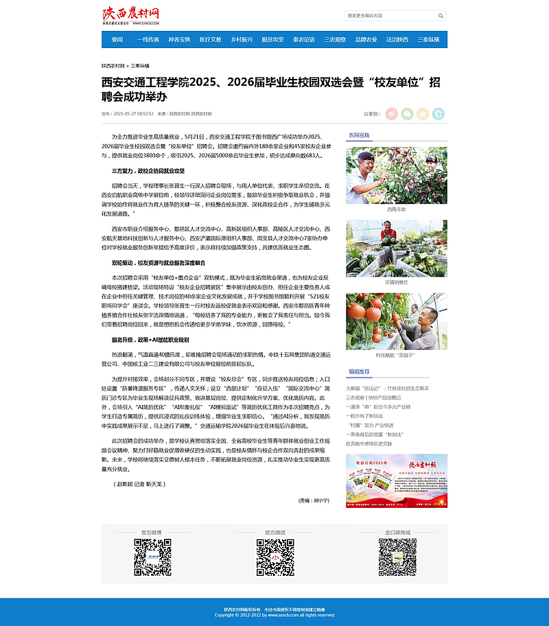 为全力推进毕业生高质量就业,5月21日,西安交通工程学院于图书馆西广场成功举办2025、2026届毕业生校园双选会暨“校友单位”招聘会。招聘会邀约省内外180余家企业和45家校友企业参与,提供就业岗位3800余个,吸引2025、2026届5000余名毕业生参加,初步达成意向数683人。