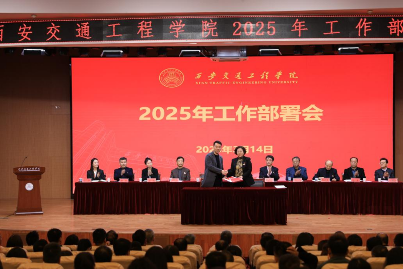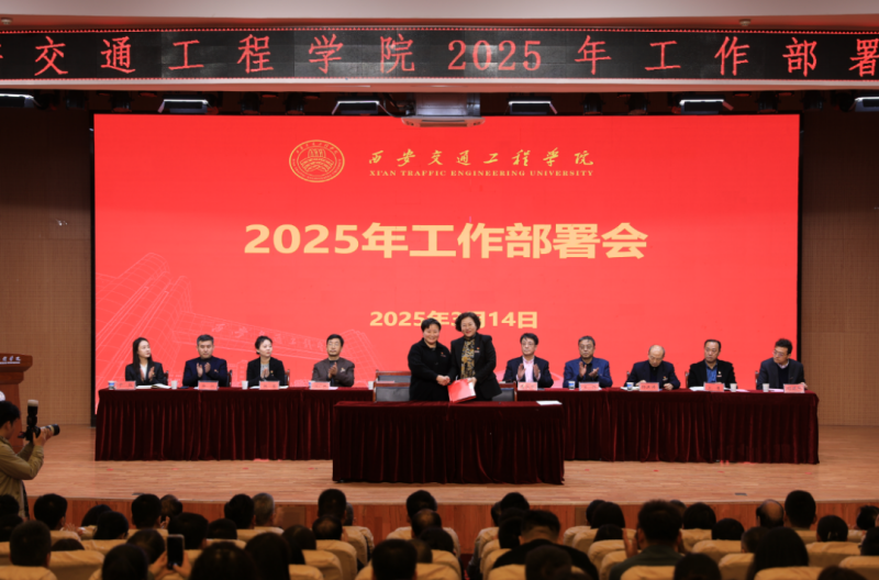 副校长吴伟宣读了《关于表彰2024年度先进单位 、优秀教师、优秀教育工作者、优秀处级干部的决定》,与会领导为获奖单位和个人颁奖;李萍书记分别与二级党组织代表交通运输学院党委、机械与电气工程学院党委、中兴通信学院党委、土木与铁道工程学院党委签订了全面从严治党责任书;张晋生理事长分别与部门和学院代表学生处、保卫处、人文与管理学院、现代技术学院签订了安全稳定责任书。