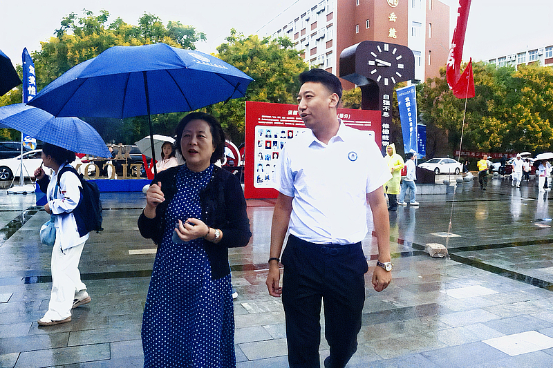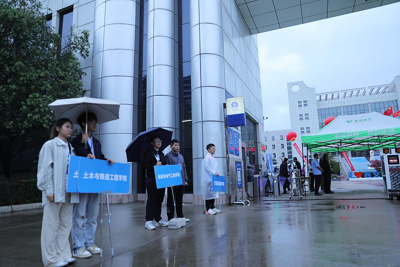 在报到现场,身着志愿服务马甲的志愿者们穿梭如风