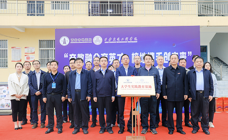 仪式现场,气氛庄重而热烈。西安市地震局党组书记、局长任涛,二级巡视员邢晴汉,副局长张民等地震局领导,西安交通工程学院校长曹庆年、副校长王勇,土木与铁道工程学院领导班子、师生代表,以及中国地震局第二监测中心、陕西省地质调查院、中国建筑西北设计研究院等平台成员单位代表共同出席见证。