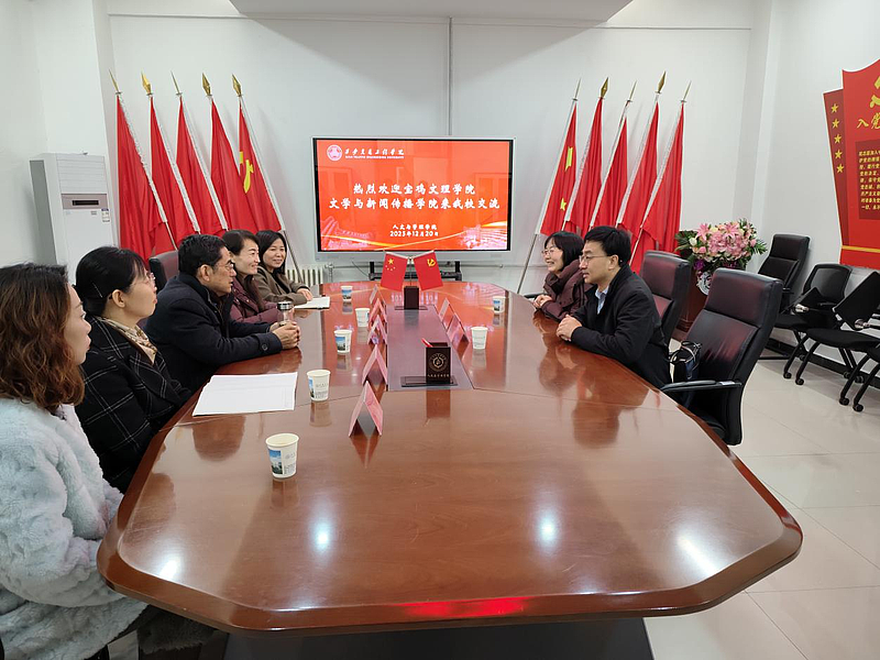 12月19日,宝鸡文理学院文学与新闻传播学院院长孟改正一行来我校交流。人文与管理学院领导班子参与了交流活动。